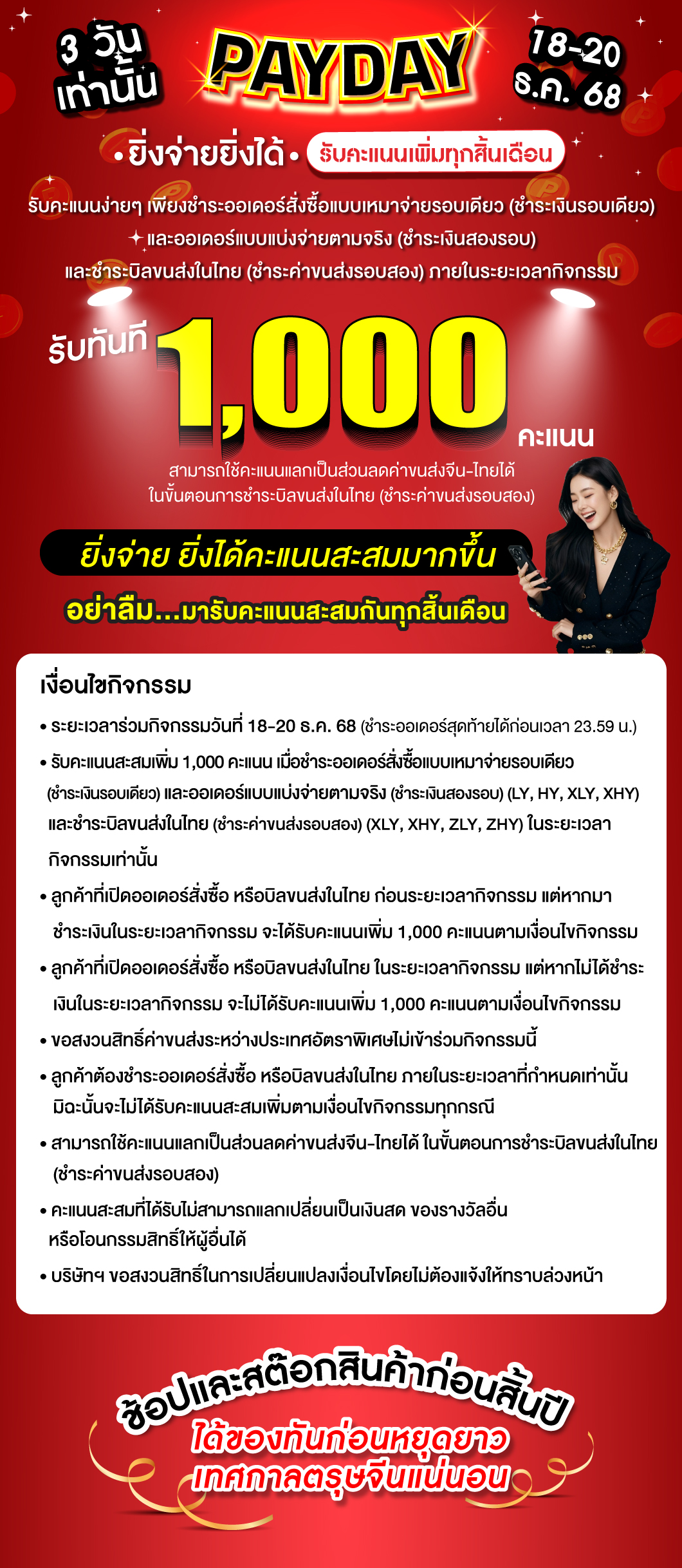 รับคะแนนเพิ่มทุกสิ้นเดือน 18-20 ธ.ค.68