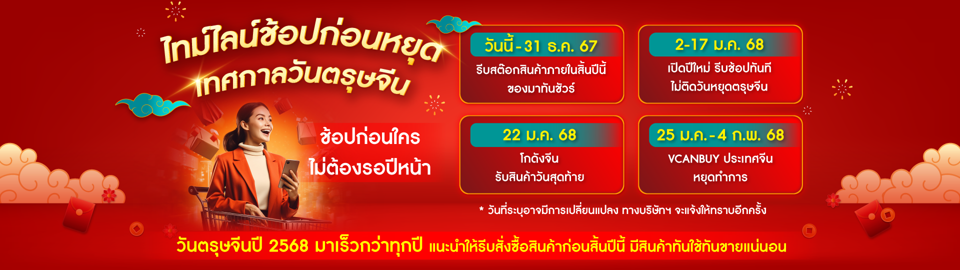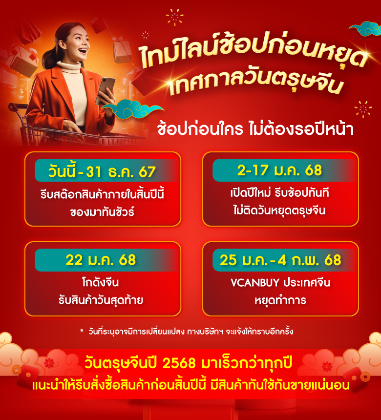 ระยะเวลาการขนส่งสินค้าจากโกดังจีนมายังโกดังไทย ซึ่งอาจคลาดเคลื่อนได้ หากเกิดเหตุสุดวิสัย เช่น ด่านตรวจสินค้า ภัยธรรมชาติ วันหยุด หรือเหตุอื่นๆ ที่ไม่สามารถคาดการณ์ได้ล่วงหน้า