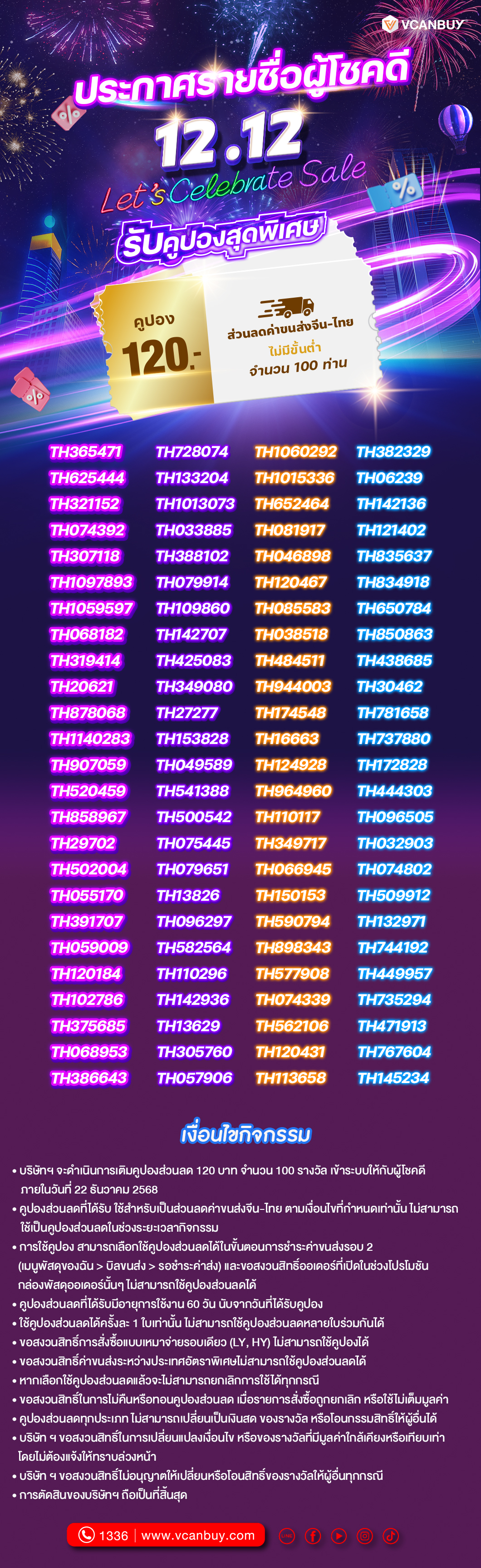 ประกาศรายชื่อผู้โชคดี 12.12
